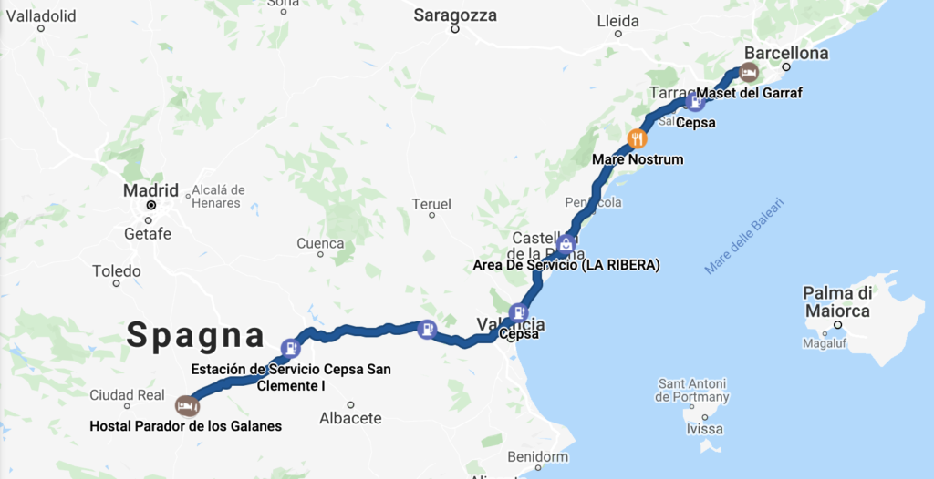 Due ore di viaggio soltanto per adesso in parte sulla N340 ma troppo trafficata e ripiegando dopo sulla AP-7, una vera e propria autostrada.