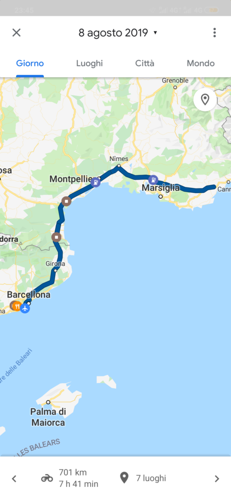 Passo Girona e dopo un numero imprecisato di ore (circa 8) arrivo a Barcellona.